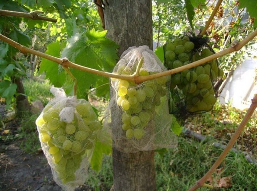 - Закрепите уложенный виноград низкими дугами.
