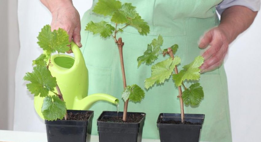 В первый год жизни виноград регулярно поливают, особенно это необходимо в засушливые дни – 2 раза в неделю под куст выливают ведро воды. Засыпают ямку грунтом, слегка рыхлят землю.