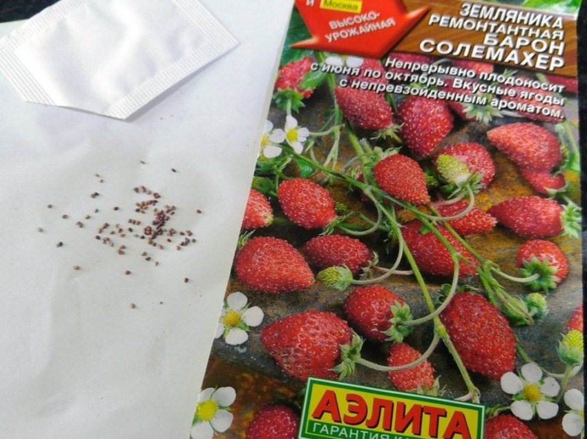 У клубники и земляники мелкие семена, получить их можно с собственных ягод, попросить ягодку у соседки или купить в магазине, выбрав сорт на свой вкус и цвет. Обычно семян в пакетике много, хватит для посева на рассаду для одной грядки.
