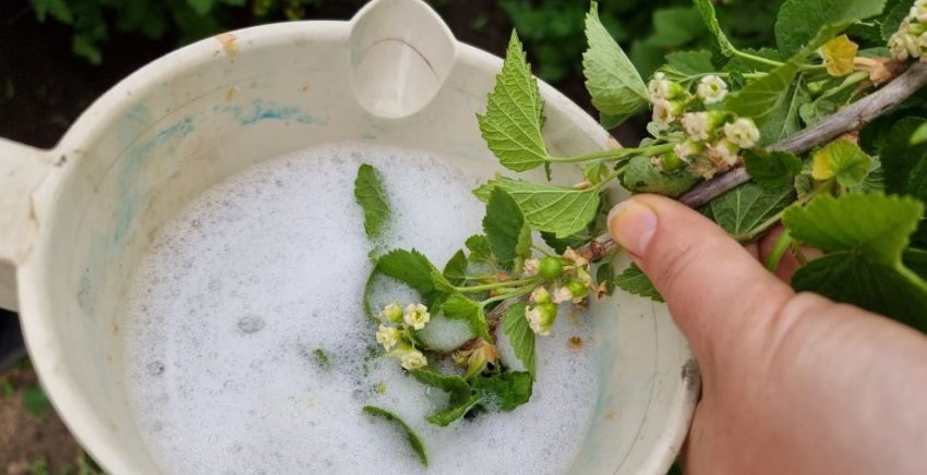 Бороться с тлёй таким способом можно хоть всё лето, обмывая побеги мыльным раствором регулярно, это не вредит растениям, окружающей среде и не занимает много времени.