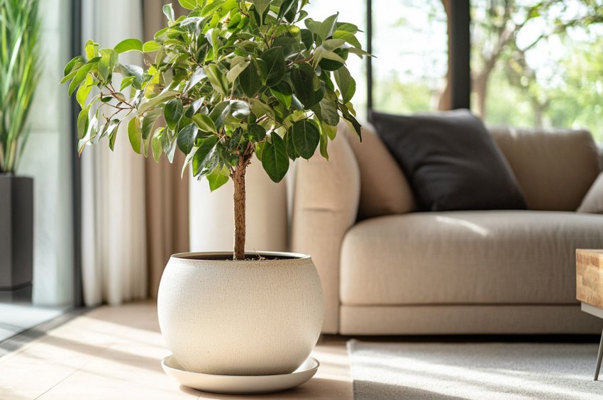 - Растения, требующие хорошего дренажа (например, фикусы, пальмы, драцены): Лучше всего сажать в большие керамические горшки с дренажными отверстиями.