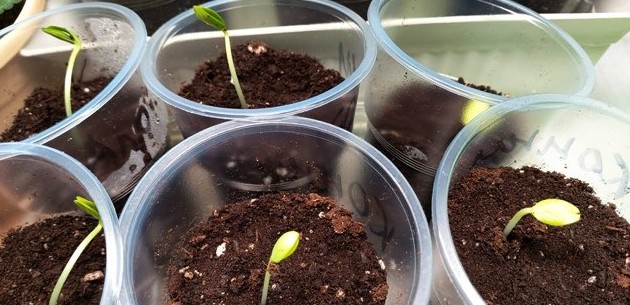 - Семена огурцов предпочитаю сеять сухими без замачивания и проращивания. На влажный грунт по центру стакана помещаю 1 семечко.
