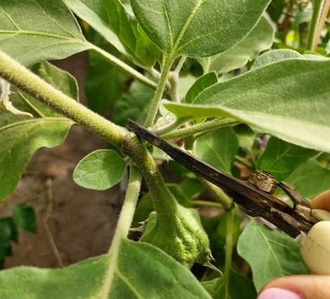 - Пасынки, верхушки побегов и листья у баклажанов нужно срезать секатором или ножницами.
