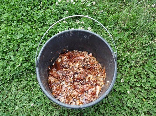 - Луковая шелуха – очистки кладут в лунку, а картофель перед посадкой можно замачивать в крутом отваре;